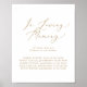 Ce panneau mémorial de mariage mémoire affectueuse or délicat est parfait pour un mariage moderne. Le design romantique minimaliste présente une typographie jaune doré champagne élégante et charmante sur fond blanc avec un aspect propre et simple.