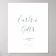 Ce panneau minimaliste de cartes et de cadeaux bleu poussiéreux est parfait pour un mariage élégant ou une douche de mariée. Le design présente une simple silhouette de verdure dans un bleu ardoise clair avec un style minimaliste classique. La ligne de texte au bas du panneau peut être personnalisée avec la date, les noms des mariés ou un court message comme "Merci". Ce panneau peut être utilisé pour un mariage ou tout événement ou fête.