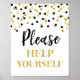 Panneau servez-vous pour baby shower, enterrement de vie de jeune fille, fête d'anniversaire ou mariage avec un motif de confettis noir et or.