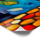 A.I. a créé l'impression d'un vase vibrant de panneaux colorés assis contre un arrière - plan dynamique et abstrait avec des motifs tourbillonnants et un avant-plan en mosaïque.