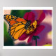 Peinture d'un papillon assis sur une fleur. Très coloré avec une image vibrante sur un arrière - plan doux et brumeux.