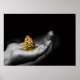 Un papillon jaune assis sur la main d'un homme, cette image est isolée de couleur.