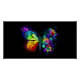 Arc en ciel, papillon monarque lumineux, artistiquement peint avec bouquet de roses irisés, lumineux, lumineux sur arrière - plan noir. Papillon arc-en-ciel.