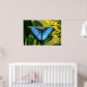 Papillon bleu Morpho contre un arrière - plan de feuillage vert verdoyant, photo réelle.