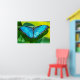 Papillon bleu Morpho contre un arrière - plan de feuillage vert. Une affiche mignonne pour vous ou en cadeau.