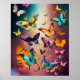 Imaginaire lunaire Vol de l'affiche des papillons colorés