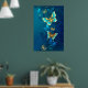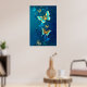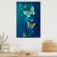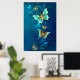 Or volant, papillon bijoux sur arrière - plan textuel bleu. Conception avec papillons.