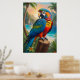 La macaw Hawaiin tropicale vibrante pose sur un moignon en bois avec un arrière - plan de paradis tropical. Beau oiseau aux couleurs jaune, bleu, rouge, vert et orange. Ce cadre tropical comprend palmiers, îles, plages, vagues tropicales et plantes des tropiques.