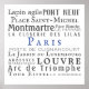 Paris et ses monuments de la typographie vintage, noir sur blanc avec accent bleu. Pas besoin d'être un francophile pour avoir cette grande image dans son décor !