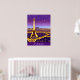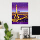 Poster dans une illustration impressionniste de Paris contre un ciel étoilé violet, avec la Tour Eiffel illuminée de dôme