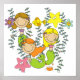 T-shirts, tasses, sacs, cartes, autocollants, seringues, ornements, magnets, mousepads, coussins, horloges murales, boutons, etc... avec une sirène blonde, rousse et brune, une étoile de mer, des fleurs, des mauvaises herbes, du poisson et un petit crabe !