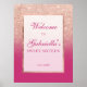 Ce panneau d'accueil sweet sixteen glamour présente une bordure en parties scintillant or rose qui se détache dans un arrière - plan rose sombre, avec des polices serif et des polices de script élégantes pour célébrer la fille d'anniversaire. Parfait pour faire une déclaration à l’entrée de la fête, il peut être personnalisé avec le nom et la date de l’invité d’honneur. Une façon pétillante de donner le ton pour une nuit à retenir.