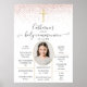 Personnalisez avec des faits amusants sur votre être cher, y compris leur photo, sur ce premier signe de communion sainte avec des parties scintillant en or rose et un élégant crucifix en or. Conçu par Thisisnotme©