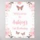 Parties scintillant rose Papillon Anniversaire Affiche de bienvenue Sweet papillon thème d'anniversaire signe de bienvenue avec deux arrangements floraux rose aquarelle et faux papillons de parties scintillant rose. Ce joli signe d'anniversaire de papillons est un ajout mignon pour vos petites filles papillon thème de la fête de premier anniversaire.