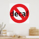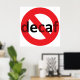 Poster de déca amusant pour les vrais buveurs de café. La caféine règne ! Dites non au café décaféiné. Arrêtez le coldbrew decaf. Terminer le café décafé torréfié léger. Le mot "decaf" est recouvert d'un symbole rouge interdit (cercle avec une ligne à travers). Dites simplement "non" à décaféder.