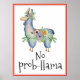 Poster Pas de prob-llama drôle fleurs enfant pièce