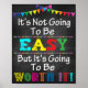Imprimable Ce ne sera pas facile, mais ça vaudra la peine de l'affiche en classe. Idéal pour les enseignants et le décor de classe ! Une façon mignonne d'ajouter de la personnalité à la salle de classe, au bureau du conseiller, au bureau du travailleur social et plus encore! Le design présente des couleurs vives contre un faux arrière - plan de tableau noir - imprime magnifiquement! Lumineux et inspirant !