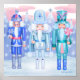 Trois noix de cou jubilantes, portant des cadeaux enchanteurs de la saison hivernale, arborent une tenue royale au milieu d'une forêt baisée par le gel de couleur pastel. Illustration originale de Noël Snow