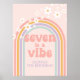 Sept est une Vibe ! Retro inspiré signe de 7ème anniversaire avec des polices et des couleurs style années 70, arc-en-ciel, et marguerites en pastel.