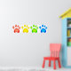 Illustration graphique simple de quatre empreintes de pattes animaux mignons en rouge, jaune, vert et bleu. Image disponible sur divers cadeaux et produits. Customisez et choisissez votre propre couleur arrière - plan ou ajoutez du texte si vous le souhaitez.