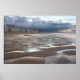 Des nuages foncés, au-dessus des immeubles d'appartements de Wenduine, avec la lumière reflétant le sable humide sur la plage de Wenduine, de Haan, Belgique. L'aspect surréaliste de l'art d'affiche du paysage côtier belge.