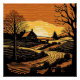 Un tableau numérique d'un paysage rustique dans un style boisé.