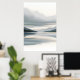 Ce paysage minimaliste d'inspiration nordique mêle des coups de pinceau doux et des tons feutrés avec l'impression tactile de la photographie analogique de format moyen, créant une image sereine et haute résolution idéale pour des intérieurs propres et apaisants. Capture l'essence des paysages de fjord scandinaves, réflexions du ciel glaciaire et une esthétique cinématographique vintage.