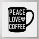 Poster Peace Love and Coffee | Citation de Mug noir et bl
