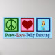 Peace Love Belly Danser. Un beau cadeau de danseuse du ventre pour une danseuse arabe avec un joli signe de paix et un coeur.