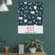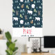 Une affiche avec un motif fantaisiste. Ours polaires, rennes, arbres, renards et flocons de neige. Sur un arrière - plan vert foncé. Texte : Peace Love & Joy.