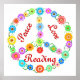 Partagez le plaisir de lire avec ce signe de paix en fleurs colorées et les mots - Peace Love Reading.