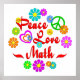 Une façon amusante de promouvoir et de partager votre amour pour les mathématiques. Profitez de ce design coloré avec un signe de paix, les coeurs, les fleurs et les mots - Peace Love Math.