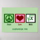 Un poster de geek mathématique personnalisable avec un signe de paix, le coeur, et la racine carré de x, un entier. Ajoutez votre propre texte personnalisé en vert pour un professeur d'algèbre ou de calcul.