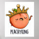 Peachy King Funny Peach Pun présente une jolie pêche portant la couronne d'un roi et se sentant très attentif. Parfait Puns cadeau pour la famille et les amis qui aiment les puns pêche mignons.