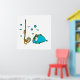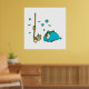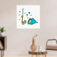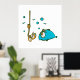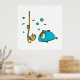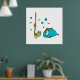 Un dessin amusant de style de pêche avec un hameçon, un ver et un poisson bleu. Ce design semble vraiment efficace sur ces Poster