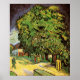 Les Châtaigniers en fleurs de Vincent van Gogh est une peinture de paysage à l'art fin vintage post-impressionniste représentant la nature. Une rue bordée de châtaigniers en fleurs au printemps avec des gens et des bâtiments autour. Un groupe de trois femmes, meilleures amies, marchent ensemble en tenant des parapluies et un homme traverse la rue.