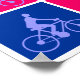 25 carrés aux couleurs harmonieuses, chacun avec un homme chevauchant un motif de vélo dans un complément, ou parfois une couleur légèrement fracassante. Chaque motif de vélo est aligné ou pivoté légèrement différemment, ce qui donne l'impression d'une bande dessinée d'un voyage à vélo dans beaucoup de couleurs psychédéliques.