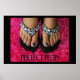 Grande affiche avec une pédicure blingante ! Impression rose et noir brillant avec poli Shatter.