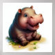 Poster Peinture 3D Aquarelle d'un Hippopotame mignon