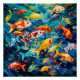Illustration numérique d'une peinture à l'huile de beaucoup de poissons dans le style expressionniste.