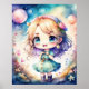 Poster Peinture aquarelle de Kawaii Chibi Female
