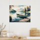 Poster Peinture d'aquarelle Canoe Lake Dock Mountain 5:4
