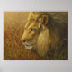 Golden Son est une peinture d'un lion mâle marchant à travers de hautes herbes dorées.