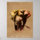 Poster Peinture d'encre Eléphant Pop Art Brown