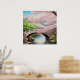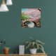 Poster Peinture D'Un Arbre De Fleur De Cerisier À Un Pont