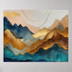 Poster Peinture Paysage Abstrait Or Pêche Bleu