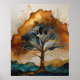Poster Peinture Paysage Abstrait Or Rouille Bleu