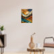 Poster Peinture Paysage Abstrait Or Rouille Bleu