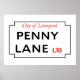 Penny Lane ~ Ville de Liverpool ~ L18 ~ Poster des enseignes de rue.