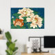 Poster Peonies vintages sur Bleu